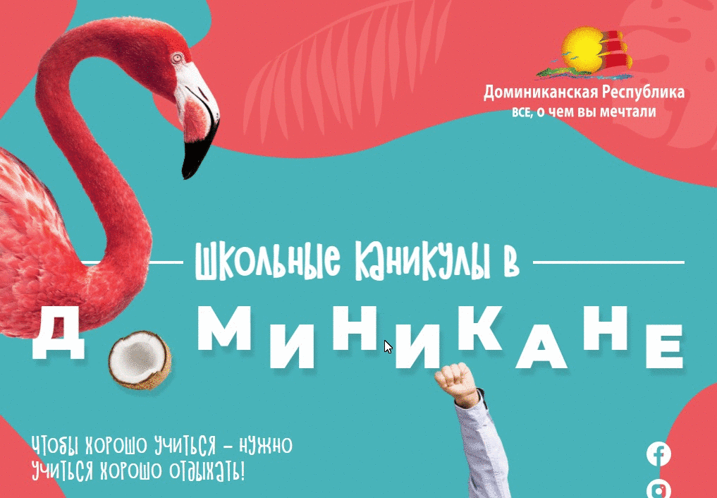 разработка красочной посадочной страницы с экспресс-гидом по Доминикане, размещение информации, которая будет полезна, прежде всего, семьям с детьми